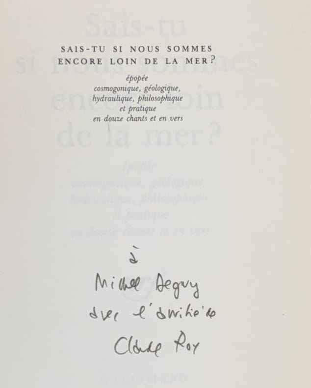 Paris Gallimard 1979 1 vol. broché in-8, broché, 124 pp. Edition originale en service de presse avec un envoi autographe signé de l'auteur à un poète et critique. Très bon état.