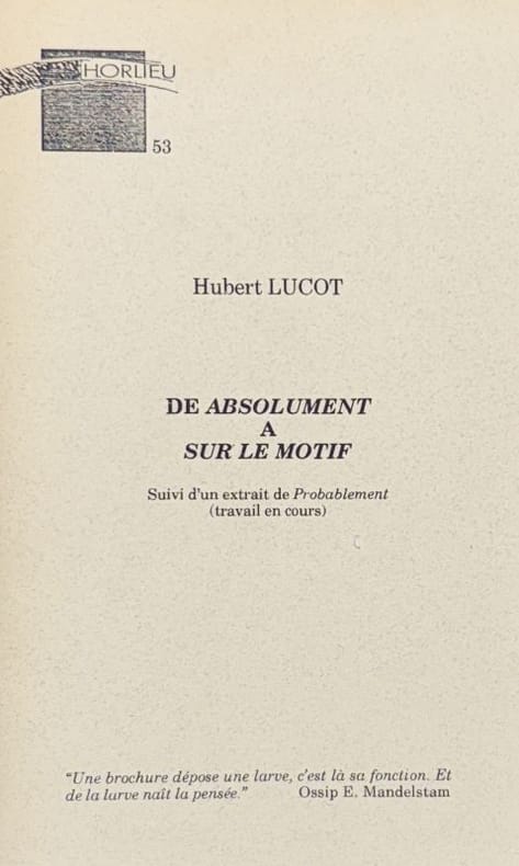 Bordeaux La Lettre d'Horlieu, s.d. [1997] 1 vol. broché plaquette in-8, agrafée, 43 pp. Causerie improvisée à Horlieu le 5 décembre 1996. Très bon état.