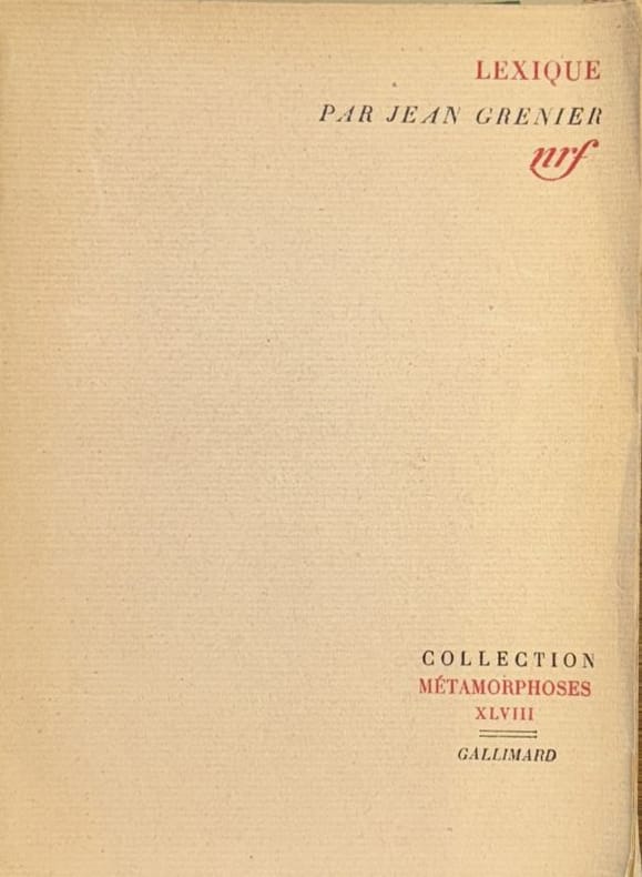 Paris Gallimard, coll. "Métamorphoses" 1955 1 vol. Broché in-8, broché, 93 pp. Edition originale de ce recueil de notes et maximes dont quelques-unes seulement était déjà parues dans une plaquette portant le même titre et publiée au Caire en 1949. Exemplaire numéroté sur châtaignier. Manque de papier au dos, en pied. Sinon en bon état général.