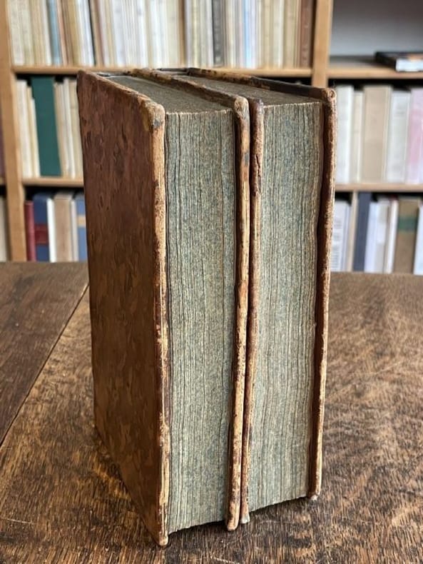 Paris chez Lacombe et Didot l'aîné 1770 2 vol. relié 2 vol. in-8, pleine basane mouchetée, dos lisses ornés de pièces de titre et de tomaison en maroquin rouge et vert, de caissons, filets et fleurons dorés, tranches mouchetées, LXVI + 432, 503 pp. + 4 p. (catalogue de l'éditeur). Edition bilingue avec la traduction de La Harpe en regard et en originale. Petites marques d'usure et de restaurations anciennes aux coiffes et mors, mais bonne reliure de l'époque.