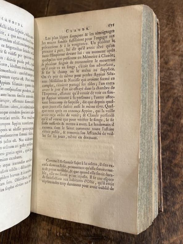Tome II seul. Edition bilingue, la traduction française faisant face au texte latin, illustrée de 9 portraits des empereurs gravés d'après l'antique.