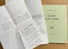 Paris Gallimard 1971 1 vol. broché in-8, broché, couverture rempliée, 124 pp. Edition originale. Un des 10 exemplaires de tête sur Hollande, celui-ci n° 1 enrichi de deux feuillets autographes signés de l'auteur adressés au mathématicien Robert Lattès (l'une reprenant les premiers vers du recueil) "qui m'a fait l'honneur de souhaiter posséder le n° 1 de La rose en ses remous". Parfait exemplaire, non coupé.