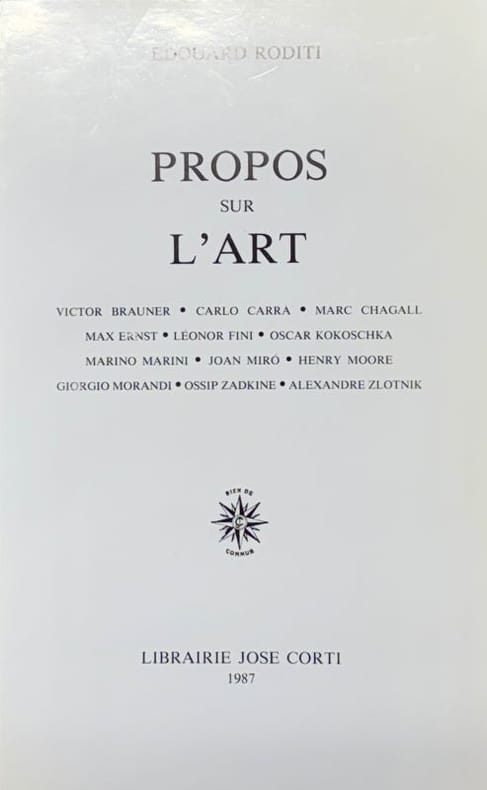 Paris José Corti 1987 1 vol. broché in-8, broché, 246 pp. Brauner, Carra, Chagall, Ernst, Fini, Kokoschka, Marini, Miro, Moore, Morandi, Zadkine, Zlotnik. Très bon état.