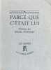 Paris La Table Ronde, coll. "Le choix" 1953 1 vol. broché in-8, broché, couverture rempliée, 153 pp. Edition originale de cette confession homosexuelle, ou "confidence libératrice", précédée d'un curieux avertissement où l'éditeur prie le lecteur de rester discret sur ce livre ! Un des 776 exemplaires numérotés sur alfa. En très bonne condition.