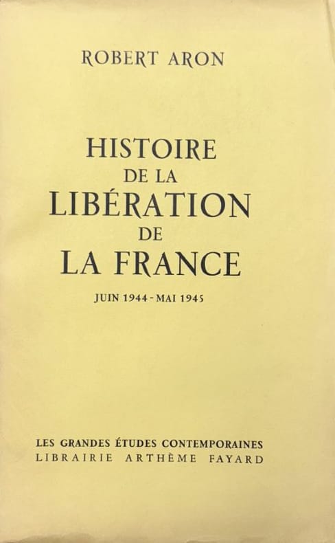 Librairie Arthème Fayard éditeur / Les Grandes Etudes Contemporaines 1964. Enorme in-8 broché de 780 pages au format 13,5 x 5 x 22 cm. Couvertures jaunes à rabats, avec titre imprimé en noir. Dos carré, avec infimes plissures. Plats et intérieur frais, malgré de minuscules brunissures aux plats. Carte de France avec l'avance de Armées Alliées, en frontispice. Etude avec cartes hors texte, suivie, d'annexes, d'une bibliographie, d'un index des noms cités et d'une table des cartes. Exemplaire en très bel état. Retirage de 1964. Exceptionel exemplaire avec magnifique dédicace, autographe, signée, pleine page de Robert Aron au Général allemand, Dietrich von Choltitz. Ce dernier installé à Paris, à l'hôtel Meurice, fut nommé par Adolf Hitler au matin du 7 août 1944, Gouverneur militaire de la garnison de Paris, ayant pour ordre de faire sauter, en cas de défaite allemande, tous les bâtiments historiques de la ville. Mais suite à l’avancée alliée et au manque d’effectifs, dans l'après-midi du 19 août, Choltitz accepta le cessez-le-feu négocié par le consul de Suède Raoul Nordling avec les gaullistes. Il n’obéira pas au führer, sauvant Paris de la destruction. Rare provenance.