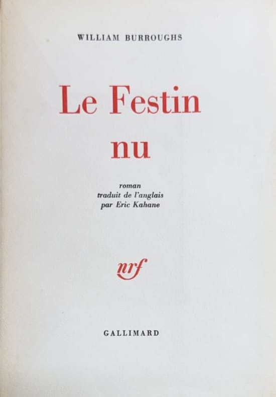 ed. Gallimard 1964 in-8 br., couv. rempliee, traduit par Eric KAHANE, introduction de l’auteur « Le Festin nu est fatalement brutal, obscene et repugnant. La maladie et ses details cliniques ne sont pas pour les estomacs delicats », edition originale numerotee sur velin bouffant des papeteries Teka (il n’est pas annonce de grand papier), couv. et dos tres tres legerement jaunis