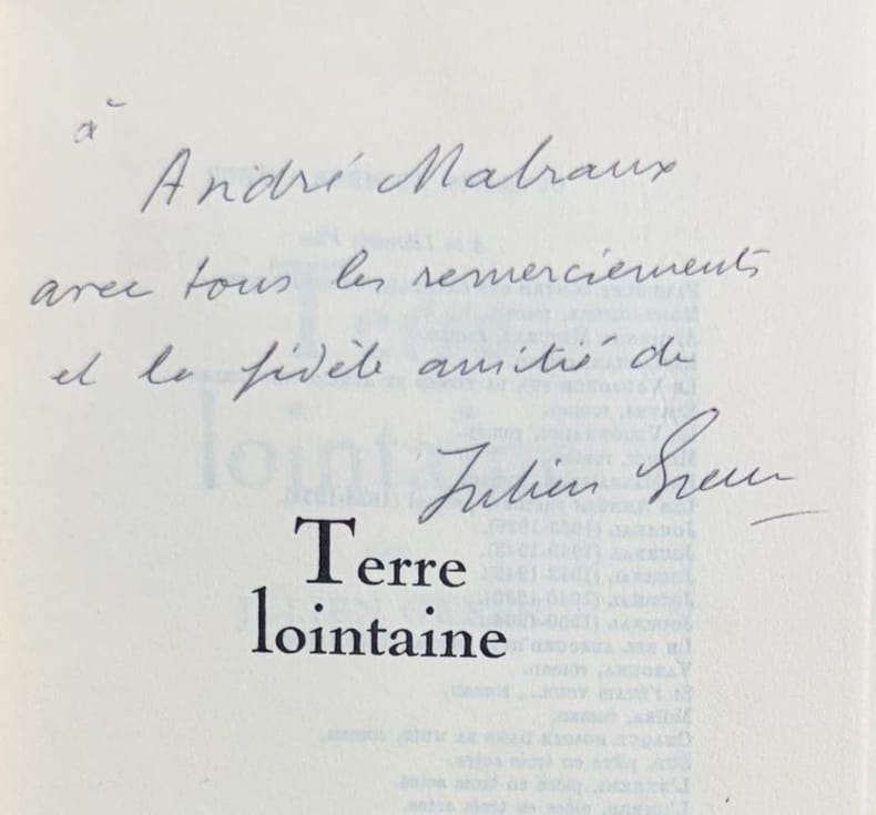 Paris Grasset, coll. "Les Cahiers verts" 1966 1 vol. broché in-12, broché, couverture rempliée, non coupé, 312 pp. Edition originale. Un des 200 exemplaires du service de presse numérotés sur alfa mousse, avec un envoi autographe signé de l'auteur à André Malraux. En parfaite condition.