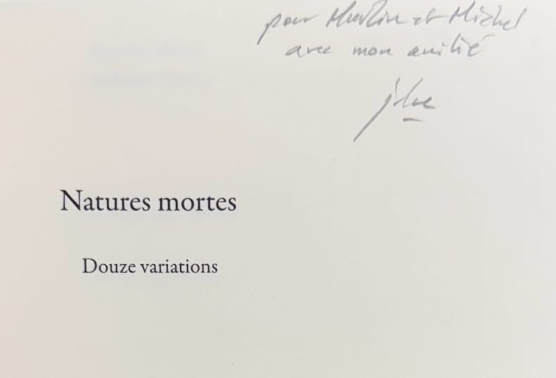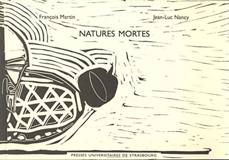 Presses universitaires de Strasbourg 2014 1 vol. Broché 55 pp, in-8 oblong, broché, couverture illustrée, non paginé, illustrations en noir de François Martin. Edition originale avec un envoi autographe signé de Jean-Luc Nancy. Douze variations philosophiques de J.-L. Nancy composées à partir du thème de la nature morte et de ses diverses dénominations dans d'autres langues et illustrées par le peintre F. Martin.
