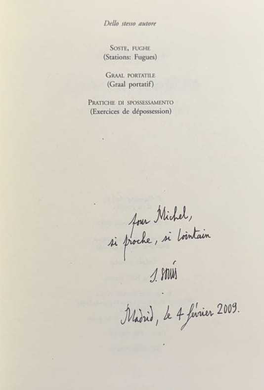 Book Editore 2009 1 vol. broché in-8, broché, 149 pp. Texte français et traduction italienne en regard par Marica Larocchi. Envoi autographe signé de l'auteur à un poète et critique. Très bon état.
