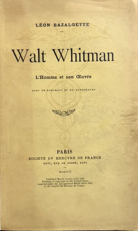 Mercure de France 1926 2 vol. broché 2 vol. in-8, brochés, XI + 515 pp., portrait-frontispice et fac-similé en double page. Edition originale de ce classique. Dos passés et ridés. Sinon bon état, non coupé.