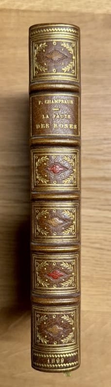 Paris Bibliothèque-Charpentier, Fasquelle 1899 1 vol. relié in-12, demi-maroquin brun à coins, dos à nerfs orné de filets et motifs dorés avec fleurons mosaïqués miel et cerise, tête dorée, couvertures et dos conservés (P. Affolter), (6) + 369 + (3) pp. Edition originale. Exemplaire sans mention (après 10 Hollande, seul tirage en grand papier). Envoi autographe signé de l'auteur à Catulle Mendès. Très bon exemplaire, dans une belle reliure signée de l'époque.