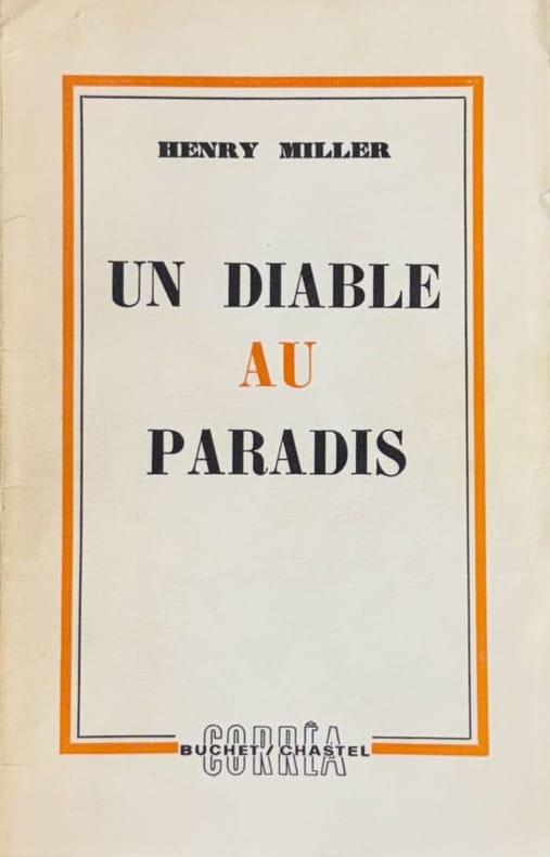 Paris Buchet / Chastel. Corrêa 1956 in 12 (18,5x12) 1 volume broché, 189 pages [1]. Achevé d'imprimer à la date du 10 décembre 1956. Traduit de l'américain par Alex Grall. Henry Miller, 1891-1980, écrivain américain. Bel exemplaire ( Photographies sur demande / We can send pictures of this book on simple request )