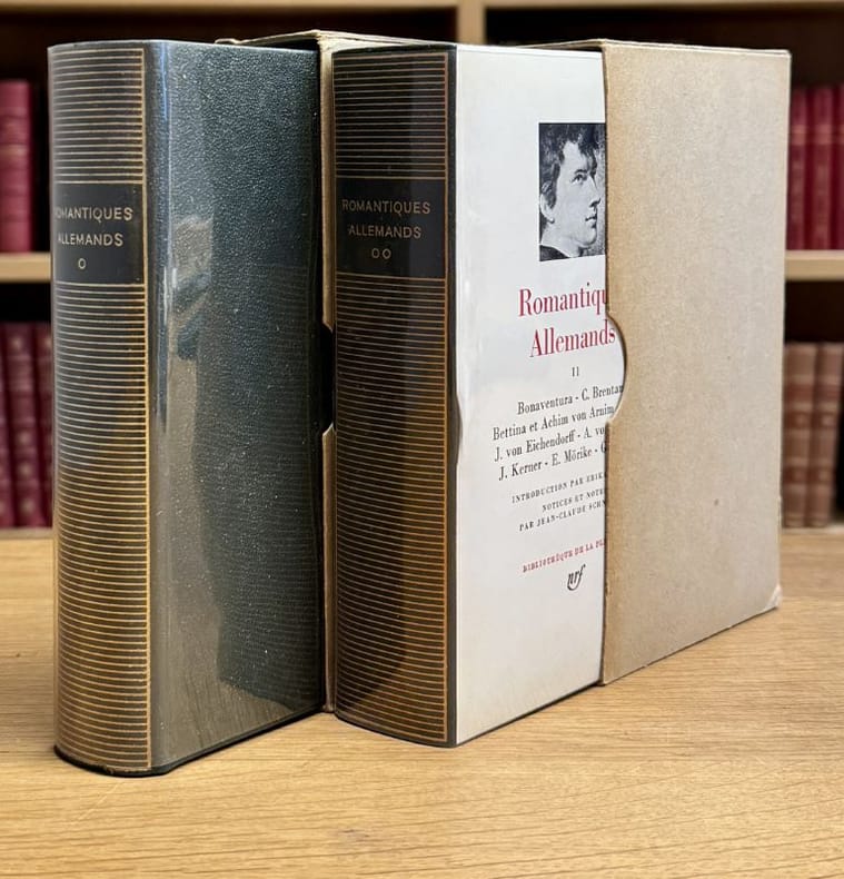Très bon 2 vol. in-12. 1606 et 1744 pages. Sous étuis. Coll. "Bibliothèque de la Pléiade". Textes de Novalis, Schlegel, Grimm, etc.