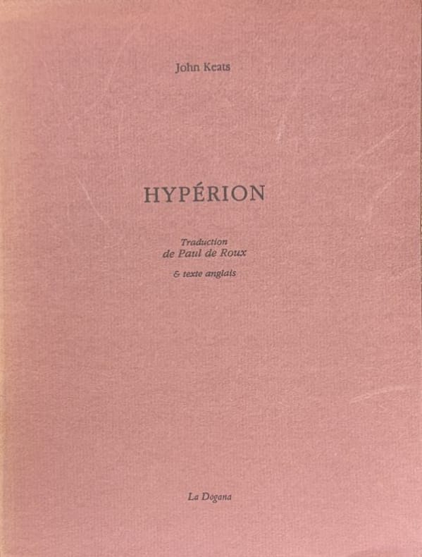 Genève La Dogana 1989 1 vol. broché in-8, broché, non paginé. Edition originale de cette traduction. Traduction de Paul de Roux et texte anglais. Tirage limité à 720 exemplaires numérotés. Très bon état, non coupé.