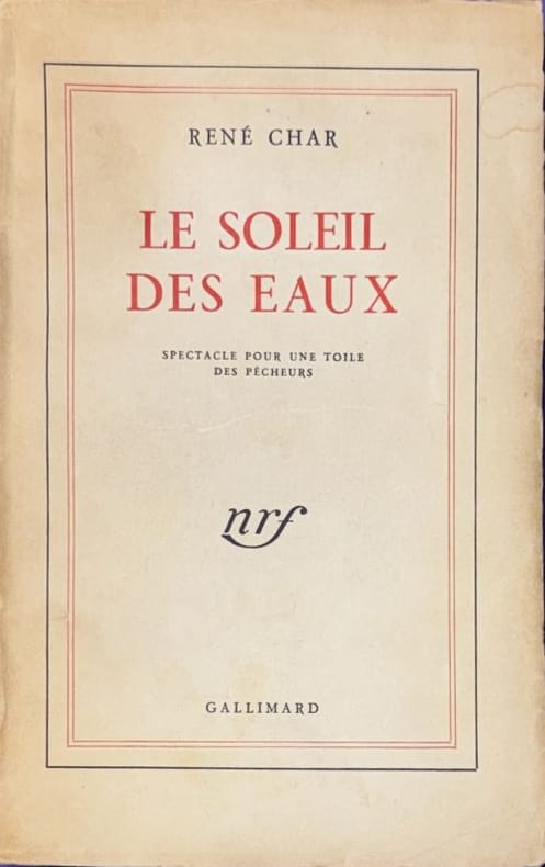 Broché bon état .Contenu propre. Coiffe et pied de dos fragilisés.Couverture tâchée. 1951. 159 pages René Char. Le Soleil des eaux . PHOTOS SUR DEMANDE