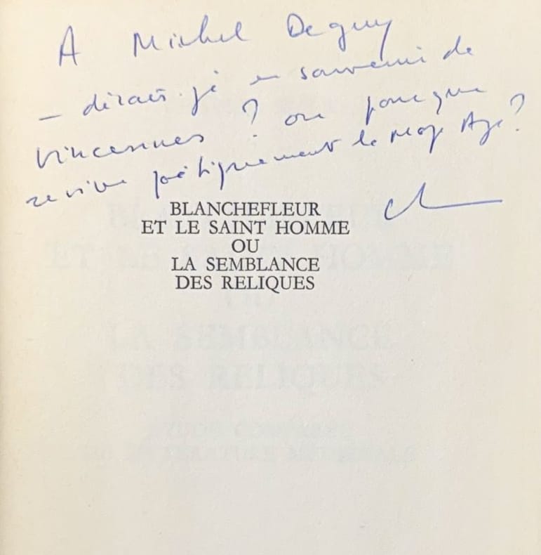 Paris Seuil, coll. "Connexions du champ freudien" 1979 1 vol. broché in-8, broché, 121 pp. Envoi autographe signé de l'auteur à un poète et critique. Couverture un peu défraîchie, sinon bon état général.