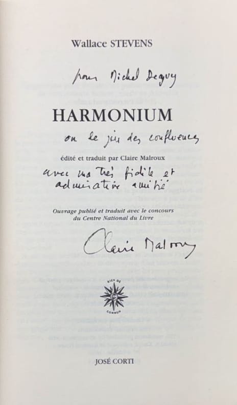 Paris José Corti 2002 1 vol. broché in-8, broché, couverture illustrée, 297 pp. Texte anglais et traduction française par Claire Malroux en regard. Envoi autographe signé de la traductrice. Très bon état.
