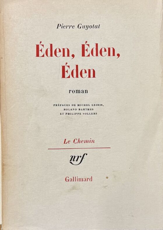 Paris, Gallimard, " Le Chemin ", 1970. In-8, broché, couverture à rabats,auteur et titre imprimés en rouge et noir.269 pp.