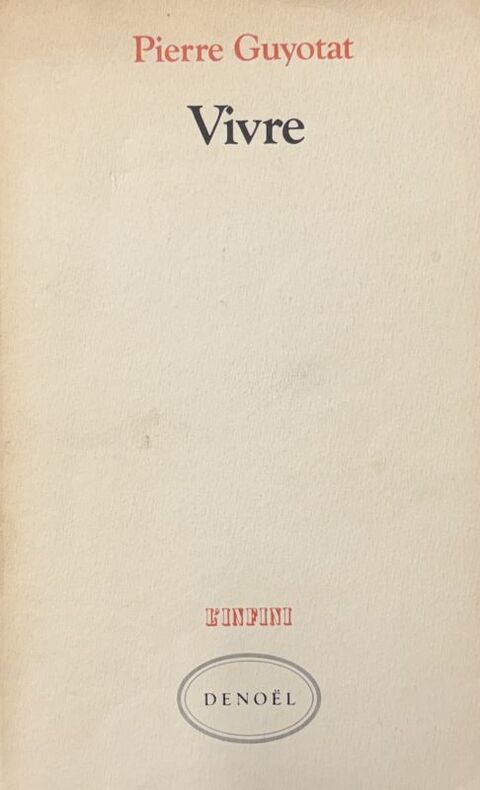 Paris Denoël, coll. "L'infini" 1984 1 vol. broché in-8, broché, 221 pp. Edition originale. Bon état.