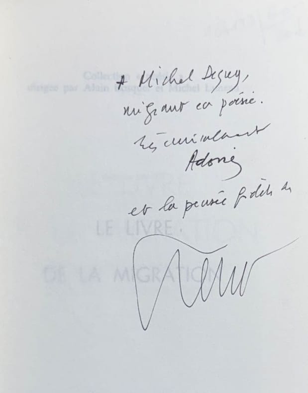 Paris Luneau Ascot Editeurs 1982 1 vol. broché in-8, broché, 277 pp. Traduit de l'arabe par Martine Faideau. Préface de Salah Stétié. Envoi autographe signé de l'auteur, contresigné par Salah Stétié. Bon état.