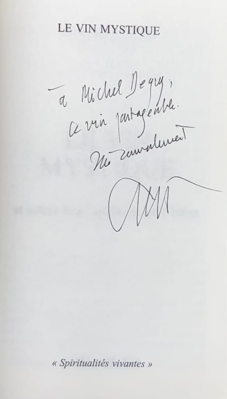 Paris Albin Michel, "Spiritualités vivantes" 2002 1 vol. poche in-12, broché, couverture illustré, 307 pp. Envoi autographe signé de l'auteur à un poète et critique. Très bon état.