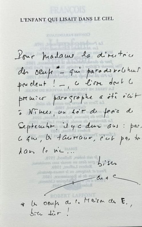 Roman. Classification Dewey : 97.2-Dédicace, envoi