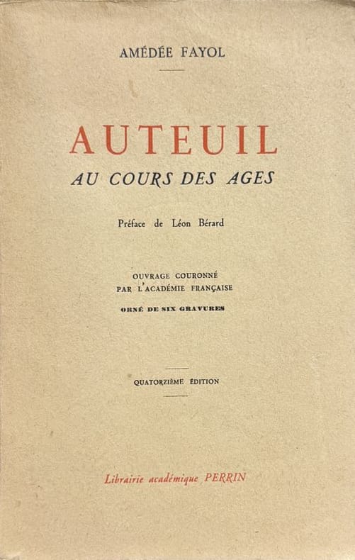 Auteuil au cours des âges. Introduction de Fernad Gregh. Préface de Léon Bérard. (Paris: Librairie Académique Perrin, 1954). [M.C.: Paris]
