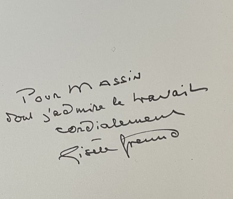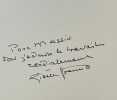 Paris Musée d'Art Moderne 1968 1 vol. Broché in-8, broché, non paginé (52 pp.), 4 portraits en couleurs et 15 en héliogravure. Cet excellent catalogue d'exposition, décrivant 200 portraits d'écrivains et d'artistes, a été entièrement rédigé par Gisèle Freund qui revient sur les conditions dans lesquelles elle a pu prendre ces photos, avec l'aide notamment d'Adrienne Monnier souvent évoquée au cours de ces pages. Bel envoi autographe signé de la photographe au graphiste Massin "dont j'admire le travail". En bonne condition.