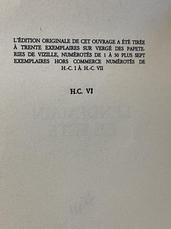Paris Editions de Minuit 1993 1 vol. broché in-8, broché, non coupé, 173 pp. Édition originale. Un des 37 exemplaires sur vergé de Vizille (seul grand papier), et parmi ceux-ci l'un des 7 hors commerce (ex. n°VI). En parfait état.
