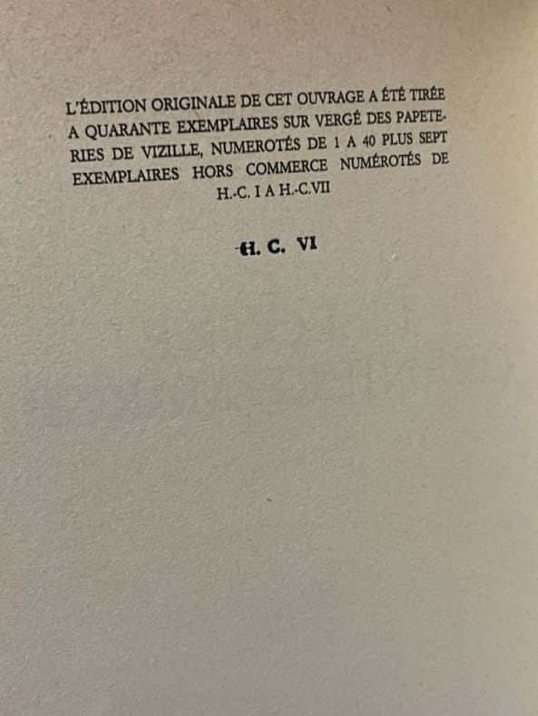 Paris Editions de Minuit 1990 1 vol. broché in-8, broché, non coupé, 244 pp. Edition originale. Un des 47 exemplaires numérotés sur vergé de Vizille (seul grand papier), et parmi ceux-ci l'un des 7 hors commerce (ex. n°VI) avec un bel envoi autographe signé de l'auteur au directeur commercial des éditions de Minuit, Henri Causse. En parfait état.