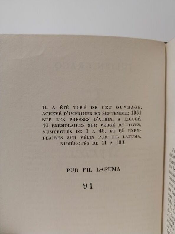 Librairie José Corti, 1952, pt in-8° (14 x 19), 323 pp, broché, non rogné, petite déchirure sans manque au 2e plat de couverture, bon état. Deuxième édition (5 août 1952), un des 750 exemplaires de tête sur vélin du Marais (numéro gratté)