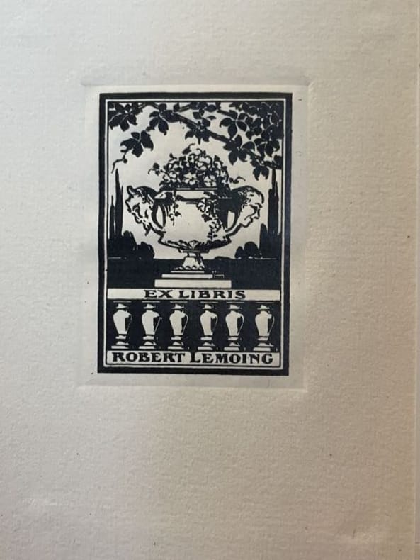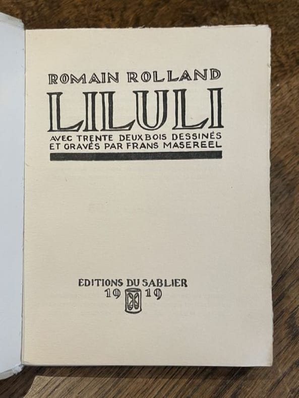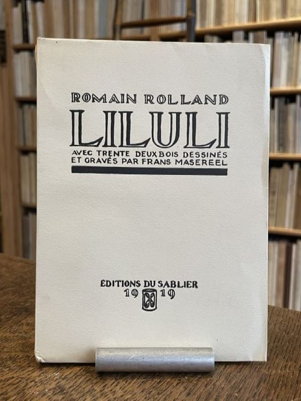 Genève Editions du Sablier 1919 1 vol. broché in-16, broché, couverture rempliée, 149 pp. Edition originale ornée de 32 bois gravés par Masereel. Un des 750 exemplaires numérotés sur vélin volumineux anglais, en très belle condition, avec ex-libris gravé Robert Lemoing.