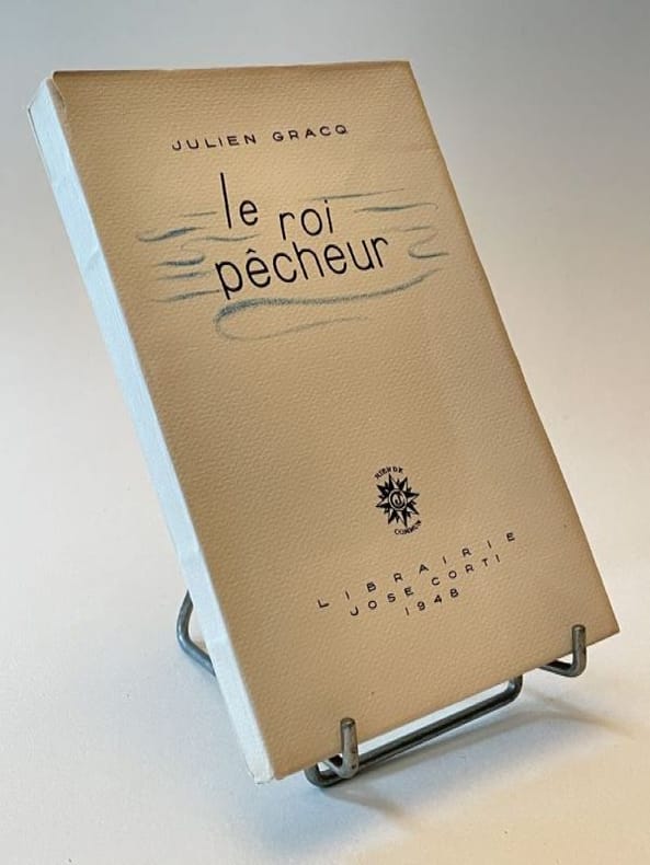 Editions José Corti 1948. In-12 broché de 150 pages au format 12 x 18,5 cm. Superbe couverture illustrée et décorée. Dos carré, insolé, avec petit manque en haut. Plats et intérieur assez frais, malgré des plats avec bords un peu insolé, ainsi que de minuscules manques aux coins et bords des couvertures, dues à un papier très fragile. Papier jaunissant et cassant. Bel général pour cette rare et fragile édition originale de la seule pièce de théâtre de Julien Gracq, inspirée du mythe Arthurien, particulièrement des récits concernant la quête du Graal et sur son gardien, le Roi pêcheur. Precieux exemplaire enrichi d'une belle dédicace autographe, signée, et datée, de Julien Gracq.
