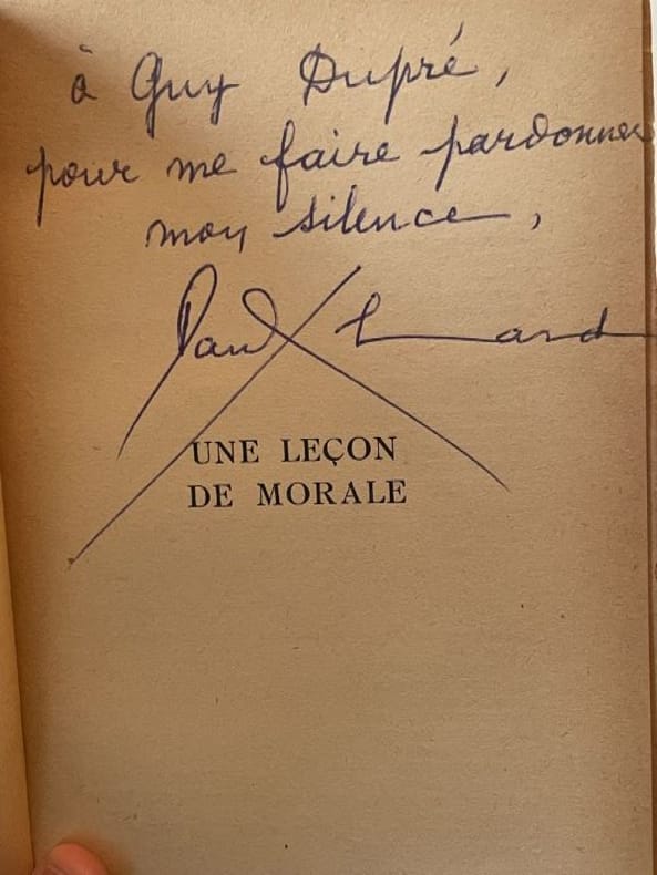 Paris Gallimard 1949 1 vol. broché in-12, broché, 174 pp. Edition originale en service de presse avec un envoi autographe signé de l'auteur à Guy Dupré. Prière d'insérer joint.