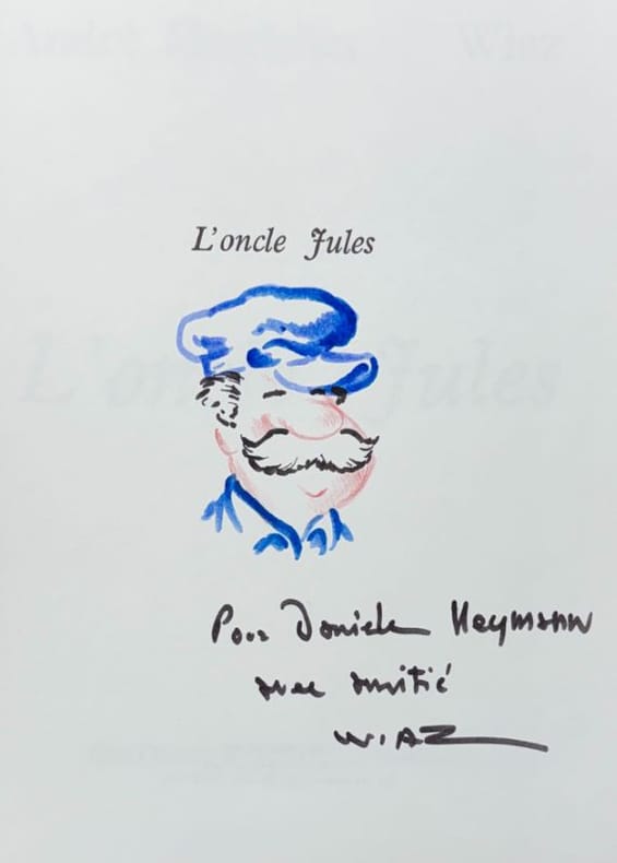 Paris Editions Régine Deforges 1986 1 vol. Broché in-8, broché, couverture illustrée en couleurs, 95 pp. Edition originale posthume de cette histoire pour enfants illustrée de nombreux dessins de Wiaz. Bon exemplaire avec un envoi autographe signé de ce dernier agrémenté d'un beau portrait original en couleurs du héros, campé sous les traits de l'auteur lui-même ! En excellent état.
