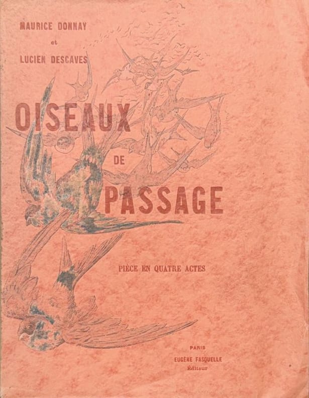 Paris Eugène Fasquelle 1904 In-12, bradel demi-maroquin bleu nuit à coins, plats de papier marbré; doublures et gardes de papier marbré, tête dorée, non rogné, couverture illustrée (Carayon).Première édition en librairie de cette pièce représentée pour la première fois au Théâtre Antoine le 4 mars 1904. Un des 40 exemplaires numérotés sur hollande, second papier après 12 exemplaires sur japon.