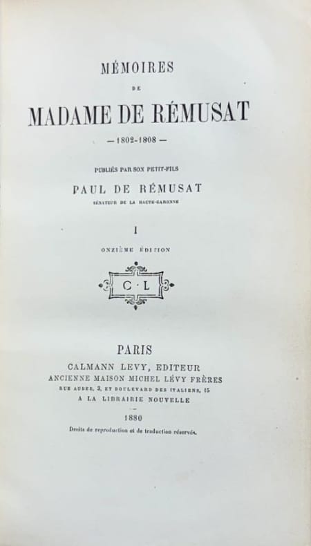 Calmann Lévy. 1880. In-8. Relié demi-cuir. Etat d'usage, 2ème plat abîmé, Dos fané, Quelques rousseurs. 413 + 420 + 416 pages. Plats jaspés. Dos cuir à titre, auteur et filets dorés.. . . . Classification Dewey : 848-Ecrits divers, citations, journaux intimes, souvenirs, mémoires