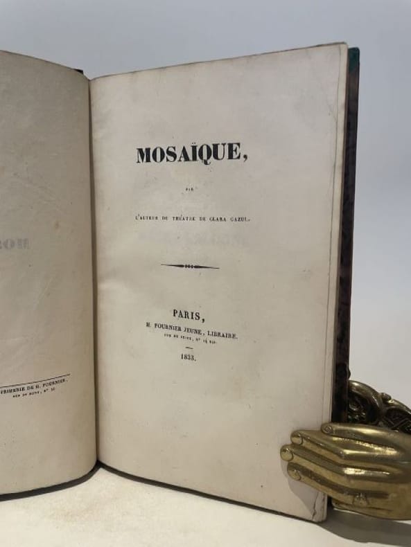 Paris Fournier 1833 1 vol. Relié in-8, demi-veau glacé caramel, dos à nerfs, pièce de titre de veau noir, caissons ornés de fleurons à froid, non rogné (Thouvenin), 439 pp. Edition originale parue sans nom d'auteur. Exemplaire entièrement non rogné, à toutes marges (204 x 130 mm). La fine reliure de Thouvenin est un peu usée (mors fragiles et dorure un peu ternie) mais reste joliment patinée. Deux ex-libris gravés sur le premier contreplat.