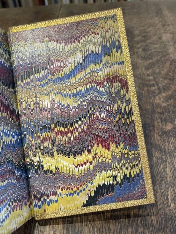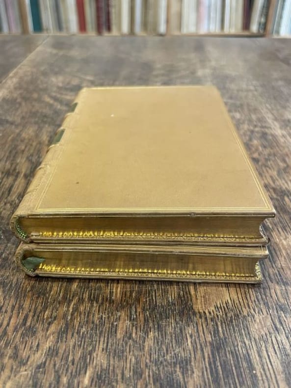 Paris Antoine Urbain 1724 2 vol. Relié 2 vol. in-12, veau blond glacé, dos à nerfs rehaussés d'incises à froid et de filets dorés, pièces de titre de veau bronze, double filet doré en encadrement sur les plats, coupes filetées, coiffes guillochées, roulette dorée intérieure, tranches dorées (Bruyère), (8)-231 et (4)-204 pp. Mouillure marginale sur les pages de garde du second volume, sinon fine reliure signée du milieu du XIXème siècle.