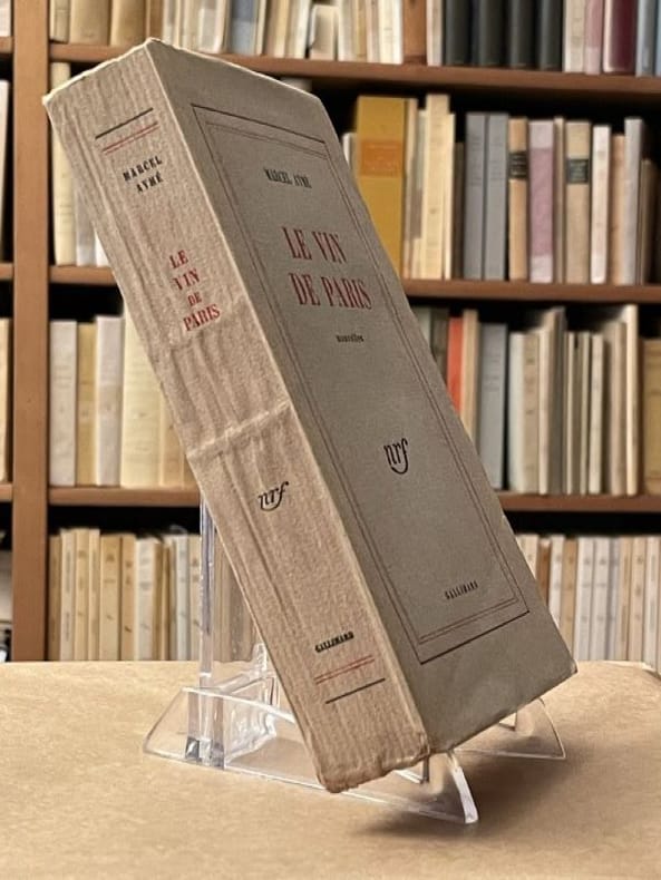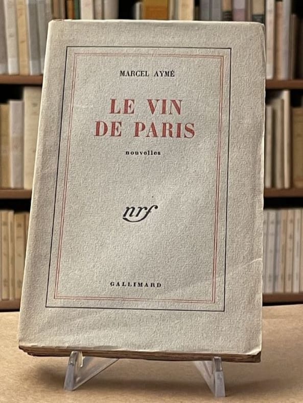 Paris Gallimard 1947 1 vol. broché in-12, broché, non rogné, sous chemise demi-maroquin vermillon et étui cartonnés (Devauchelle), 241 pp. Edition originale de ce recueil de huit nouvelles situés à Paris au temps de l'Occupation, dont la fameuse "Traversée de Paris". Un des 20 exemplaires de tête numérotés sur vélin de Hollande. Décharge brune sur la première page de garde, sinon bel exemplaire de ce classique.