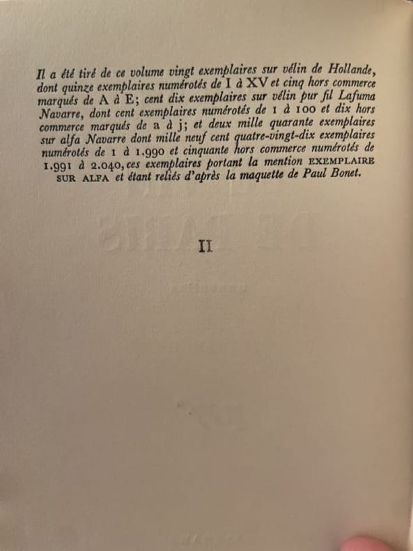 Éd. orig. qui comprend "La traversée de Paris", un des 110 ex. num. sur pur fil (n°9), 2e papier après 20 ex sur Hollande.