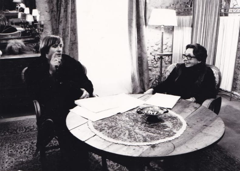 1977 1 vol. broché Tirage argentique d'époque avec tampon à l'encre "collection A. Marinie au verso", 1977, 13 x 18 cm. Ce cliché a sans aucun doute été pris par Jean Mascolo, qui était le photographe de plateau du film que tournait sa mère dans sa maison de Neauphle-le Château.