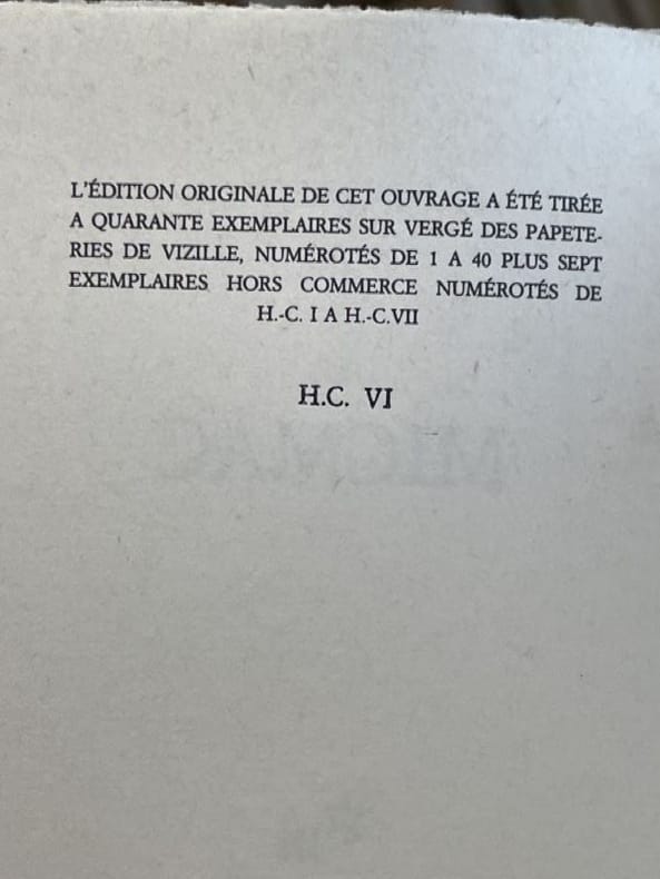 Paris Editions de Minuit 1992 1 vol. broché in-8, broché, non coupé, 154 pp. Edition originale. Un des 47 exemplaires sur vergé de Vizille (seul grand papier), et parmi ceux-ci un des 7 hors commerce (ex. VI). A l'état de neuf.