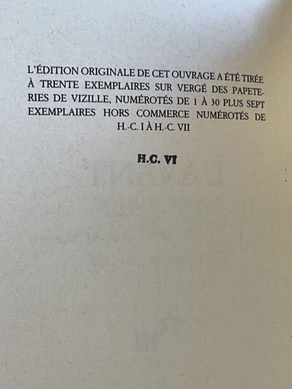 Paris Editions de Minuit 1995 1 vol. broché in-8, broché, non coupé, 141 pp. Edition originale. Un des 37 exemplaires sur vergé de Vizille (seul grand papier), et parmi ceux-ci un des 7 hors commerce (ex. VI). A l'état de neuf.