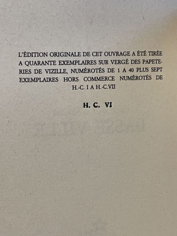 Paris Editions de Minuit 1992 1 vol. broché in-8, broché, non coupé, 123 pp. Édition originale. Un des 47 exemplaires sur vergé de Vizille (seul grand papier), et parmi ceux-ci l'un des 7 hors commerce (ex. n°VI). En parfait état.
