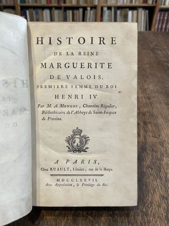 Edition originale du premier ouvrage du chanoine Mongez (1747-1835), archéologue et historien à la carrière politique agitée. C'est la première biographie de Marguerite de Valois, dite la reine Margot, qui aura aura attendu 1777 pour qu'un historien daigne s'intéresser à sa vie sulfureuse. D'une grande clarté, elle est le premier signe d'un intérêt moderne pour la reine Marguerite, qui connut les développements romanesques que l'on sait au XIXe siècle. (Cioranescu, XVIII, 45 971).