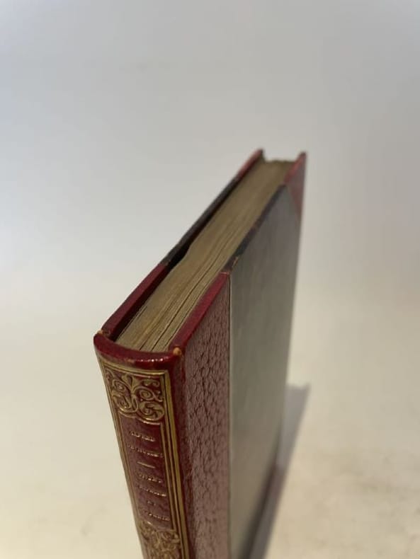 Paris A. Levavasseur & Urbain Canel 1830 1 vol. relié in-8, demi-maroquin cerise à coins, dos lisse orné en long d'une frise de dentelle dorée avec un double filet en encadrement, couvertures conservées, non rogné (Champs), VIII + 238 pp. Édition originale du premier recueil de l'auteur. Le jeune poète de 19 ans, qui va devenir l'enfant terrible du romantisme, n'a à ce jour publié que quelques romances et une traduction libre et anonyme de "L'Anglais mangeur d'opium" de Thomas de Quincey. Très bel exemplaire, avec ses couvertures vert pâle conservées, finement relié par Champs.