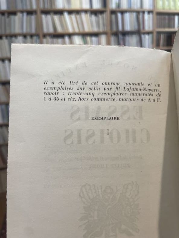 Paris Gallimard, coll. "Du Monde Entier" 1960 1 vol. broché in-12, broché, non coupé, 302 pp. Première édition française. Un des 41 exemplaire numérotés sur vélin pur fil Lafuma-Navarre, seul tirage en grand papier, celui-ci portant le n°1. Dos légèrement passé.