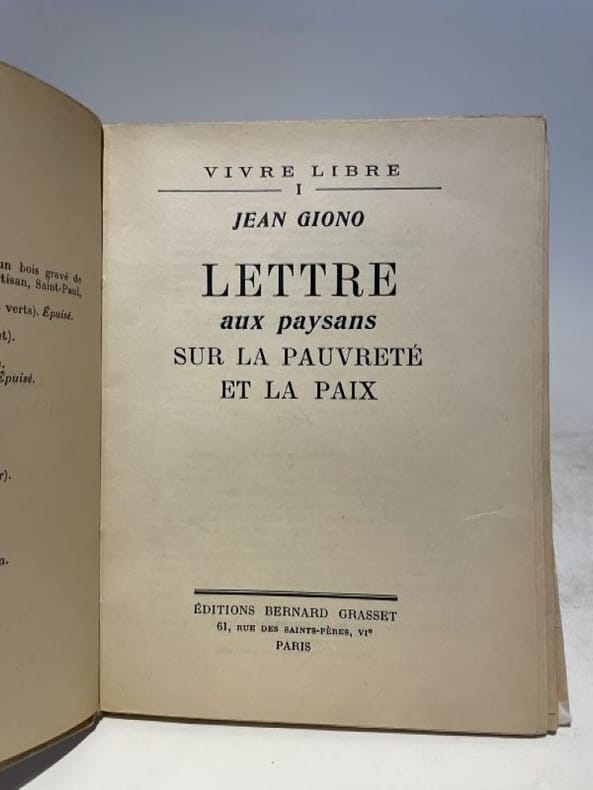 Grasset 1938/39 Deux volumes brochés in-12 carré, tome 1 : lettre aux paysans sur la pauvreté et la paix, tome 2 : précisions, bon état,