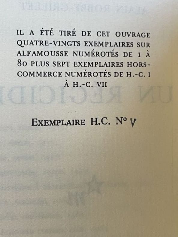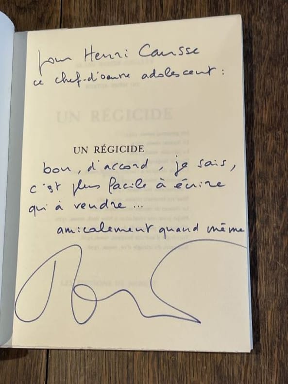 Paris Editions de Minuit 1978 1 vol. broché in-8, broché, non coupé, 227 pp. Edition originale du premier roman écrit par l'auteur, refusé par Gallimard malgré le soutien de Dominique Aury et publié trente ans après par les éditions de Minuit. Un des 87 exemplaire numérotés sur alfa mousse (seul tirage en grand papier), et parmi ceux-ci l'un des 7 hors commerce (ex. n° V), avec un bel envoi autographe signé de l'auteur au directeur commercial des éditions de Minuit : "Pour Henri Causse, ce chef d'oeuvre adolescent. Bon, d'accord, je sais, c'est plus facile à écrire qu'à vendre... Amicalement quand même". En parfait état.